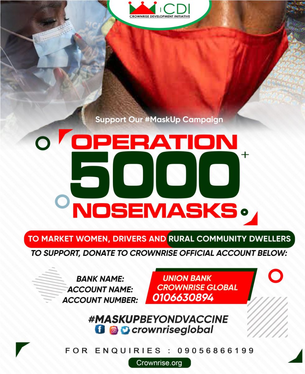 A Non Governmental Organisation, Crownrise Development Initiative (CDI) has stormed streets and market places in Osogbo, capital of Osun state to sensitise and educate people on the need to abide by all laid down safety measures by appropriate authorities to prevent contracting the deadly Corona virus pandemic.